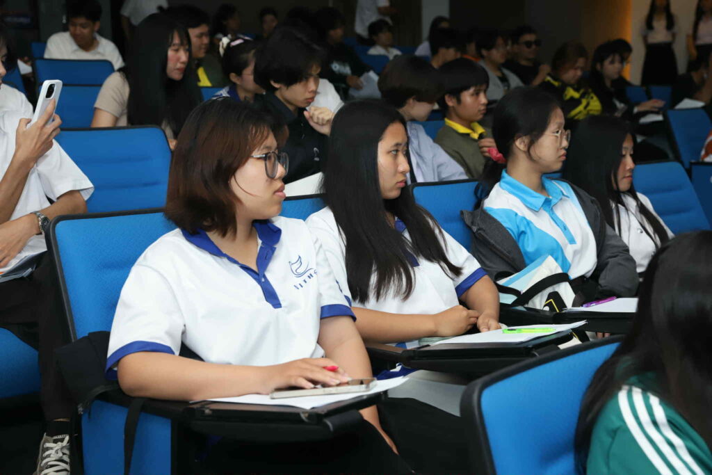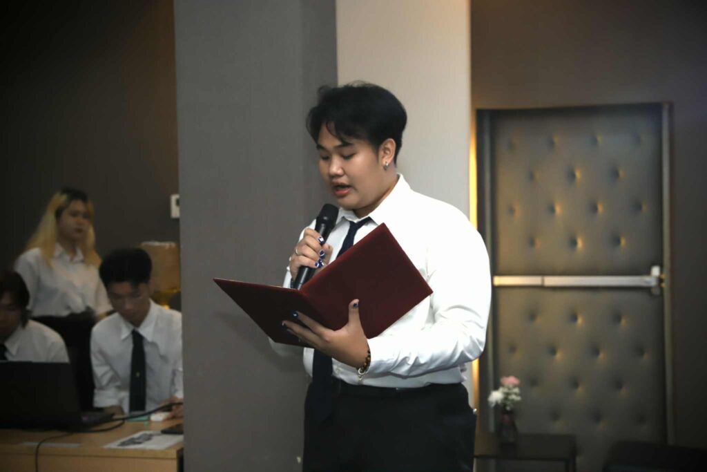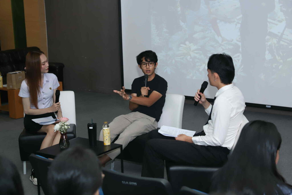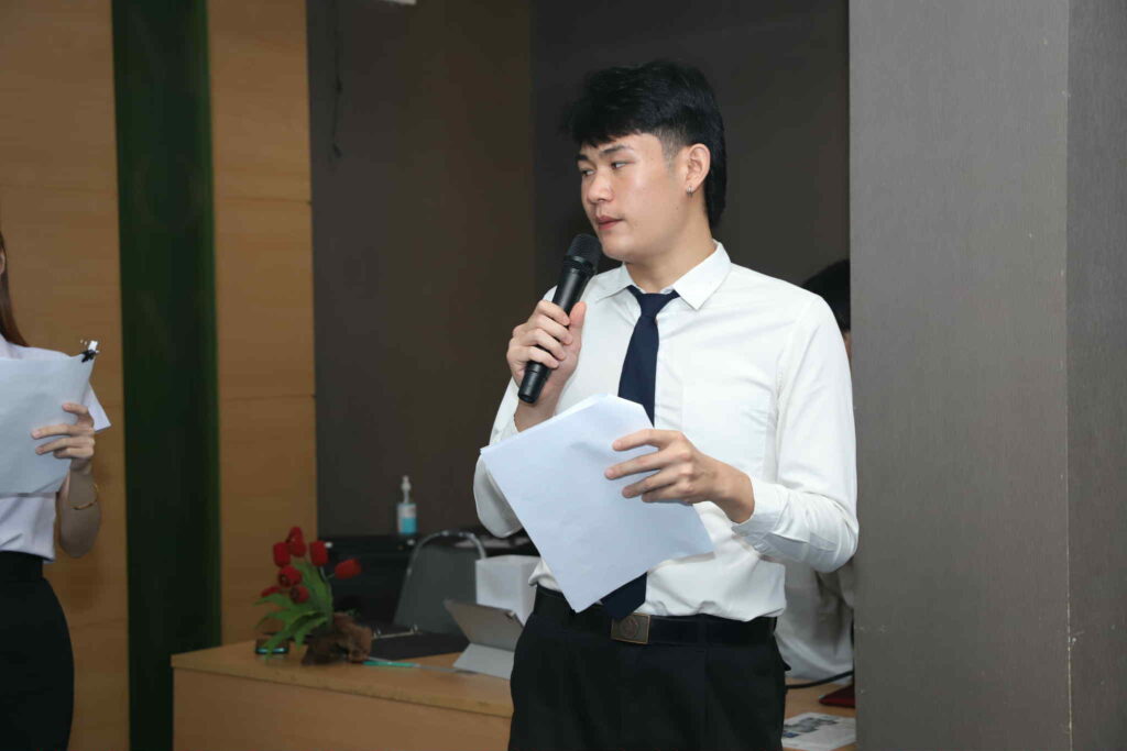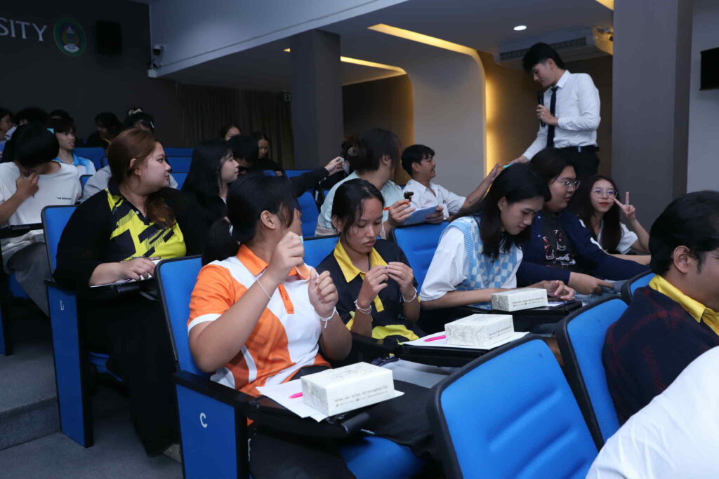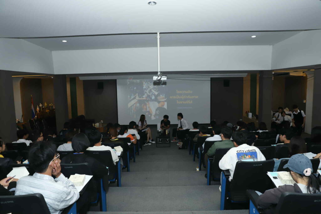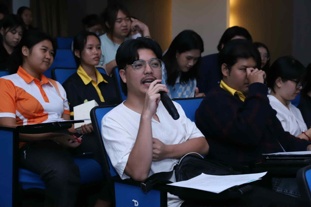 อาจารย์พลศรัณย์ ศันยทิพย์ รองคณบดีคณะวิทยาการจัดการ ให้เกียรติเป็นประธานกล่าวเปิดสัมมนา ซึ่งเป็นกิจกรรมภายใต้รายวิชา CA 2401 การสัมมนานิเทศศาสตร์ ของนักศึกษาชั้นปีที่ 4 Section 01 ภาควิชานิเทศศาสตร์ โดยมี ผู้ช่วยศาสตราจารย์ ดร. ศิรสา สอนศรี เป็นอาจารย์ผู้สอน กิจกรรมสัมมนาครั้งนี้ได้รับเกียรติจาก คุณธนานันท์ กองเพิ่มพูล ผู้กำกับภาพซีรีส์ชื่อดังจากเรื่อง “เดือนพราง” มาร่วมแบ่งปันความรู้และประสบการณ์เกี่ยวกับการกำกับภาพในงานซีรีส์ ถ่ายทอดมุมมองด้านการสร้างสรรค์อารมณ์ผ่านภาพ และเทคนิคการเล่าเรื่องด้วยกล้อง เพื่อสร้างแรงบันดาลใจให้นักศึกษานิเทศศาสตร์รุ่นใหม่ได้เข้าใจบทบาทของผู้กำกับภาพในฐานะผู้เล่าเรื่องด้วยภาพอย่างลึกซึ้ง โครงการดังกล่าวมุ่งเน้นให้ผู้เรียนได้พัฒนาทักษะเชิงสร้างสรรค์ เรียนรู้จากประสบการณ์จริง และเตรียมความพร้อมสู่การเป็นบุคลากรมืออาชีพในสายงานนิเทศศาสตร์และสื่อในอนาคต