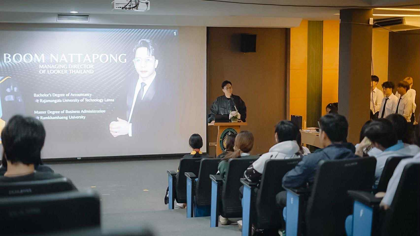 นอกจากนี้ ยังได้รับเกียรติจาก คุณณัฐพงศ์ รินสินจ้อย (พี่บูม) Managing Director ของ Looker Thailand เป็นวิทยากรพิเศษ ถ่ายทอดประสบการณ์การสร้างแบรนด์ให้มีเอกลักษณ์และโดดเด่น พร้อมเทคนิคการสื่อสารและการสร้างคอนเทนต์ที่สามารถจดจำได้ง่าย ซึ่งกิจกรรมสัมมนาครั้งนี้จัดขึ้นภายใต้รายวิชา CA 2401 การสัมมนานิเทศศาสตร์ โดยมี ผู้ช่วยศาสตราจารย์ ดร.ศิรสา สอนศรี เป็นอาจารย์ผู้สอน มีวัตถุประสงค์เพื่อให้นักศึกษาภาควิชานิเทศศาสตร์ได้เรียนรู้จากประสบการณ์จริงของผู้เชี่ยวชาญในวงการสื่อ พร้อมฝึกทักษะการจัดกิจกรรม การสื่อสาร และการทำงานเป็นทีม บรรยากาศภายในงานเต็มไปด้วยความสนใจและพลังสร้างสรรค์ นักศึกษาได้รับทั้งความรู้ เทคนิคการสร้างแบรนด์ รวมถึงแรงบันดาลใจในการนำไปปรับใช้กับการเรียนและการทำงานด้านนิเทศศาสตร์ในอนาคต